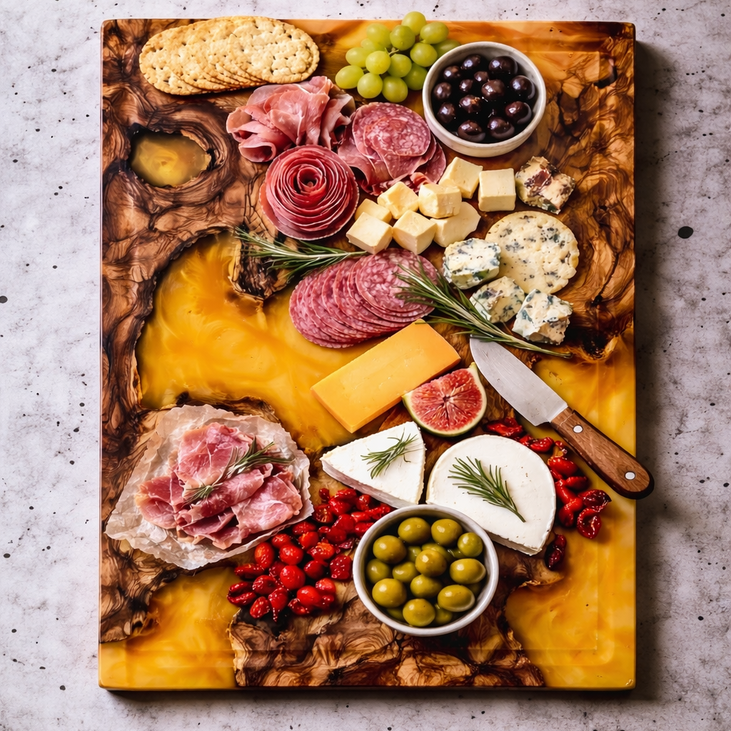Epoxy Board Gold – Handgefertigtes Schneidebrett aus Olivenholz mit Epoxidharz