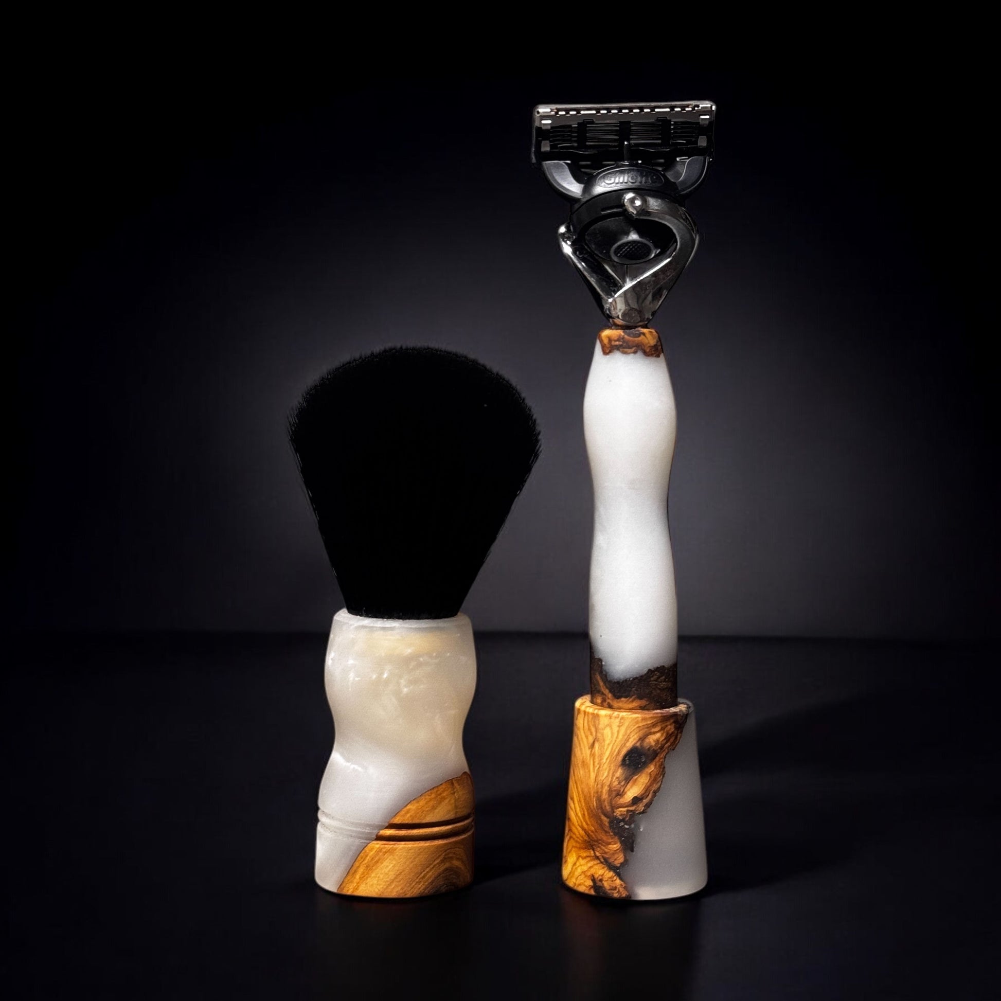 Edles Rasier-Set aus Olivenholz – Rasierhobel, Pinsel & Sockel ✂️✨