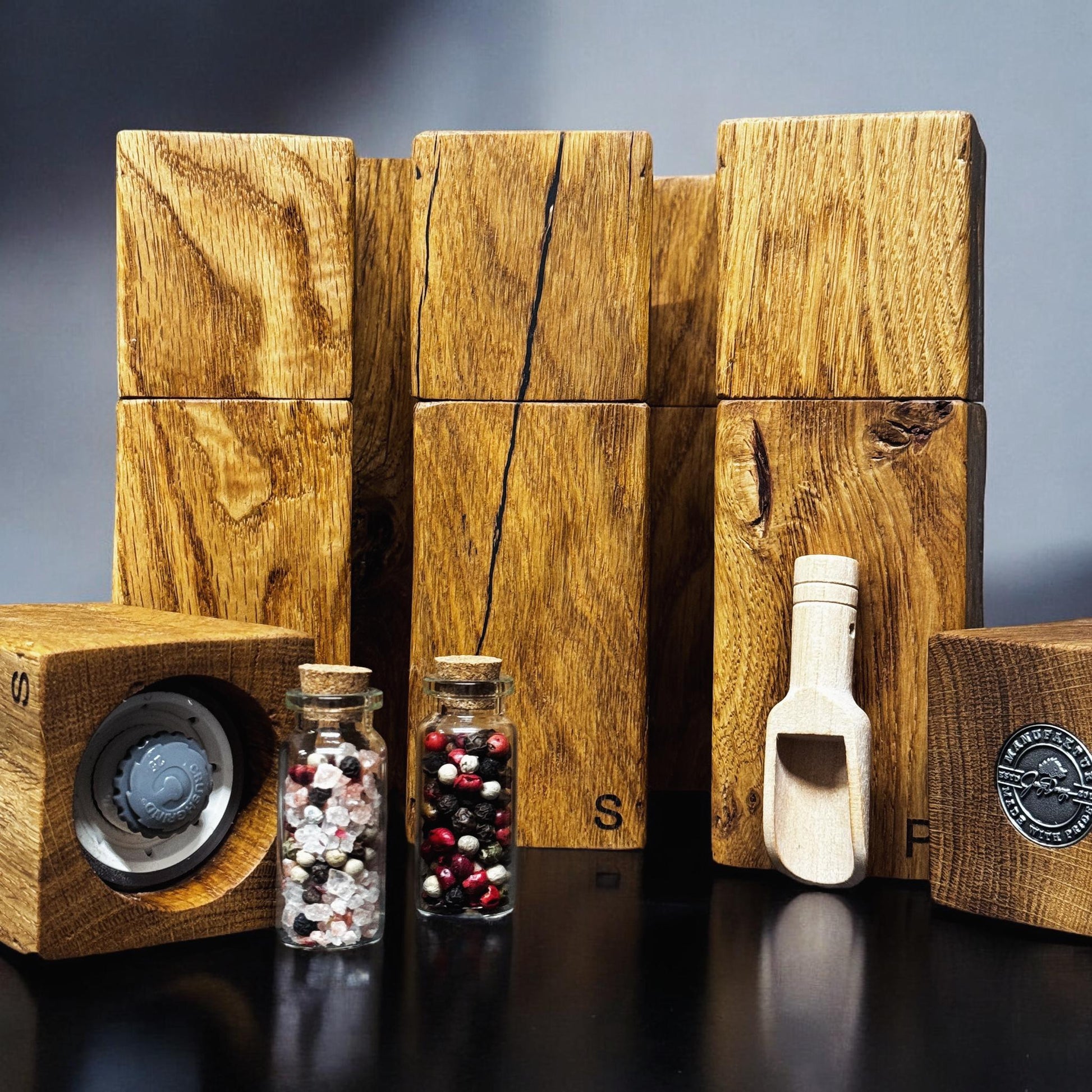 Entdecken Sie die perfekte Kombination aus Funktionalität und Eleganz mit unseren exklusiven Pfeffer- und Salzmühlen aus gebürstetem Eichenholz. Unsere Produkte sind nicht nur ein unverzichtbares Werkzeug für Ihre Küche, sondern auch ein stilvolles Accessoire, das Ihren Tisch und Ihre Küche aufwertet